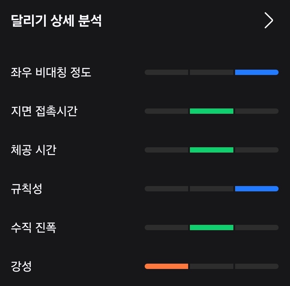 삼성헬스의 ‘달리기 상세 분석’ 기능을 통해 러닝 자세를 평가해본 결과는 다음과 같습니다.